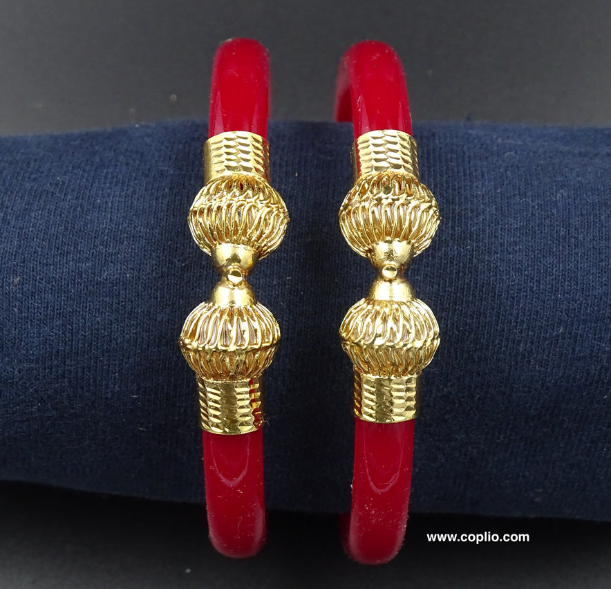 Gold Plated Mukh Red Pola Bangle.( Design Code: MP101 )