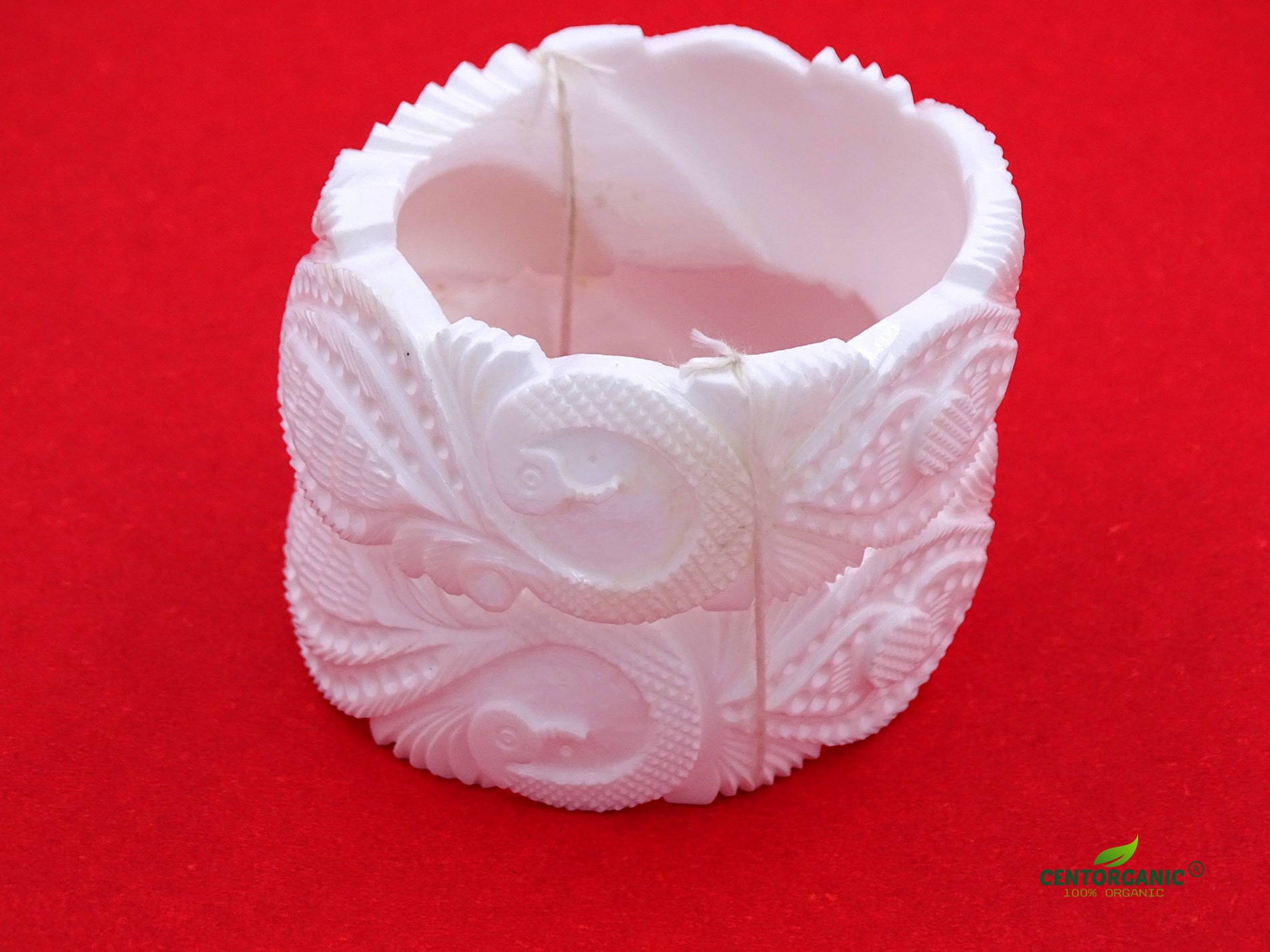 ✅ Bangle Name: Fashion chura sankha. Fish Design.✅ Type: Original conch bangle.✅ Thickness of sakha: 06mm ✅ Material: Sankha - Original natural conch shell sankha, Pola - Ordinary plastic pola, Noa - Ordinary Iron noa, Jewellery Box - Sheesham Wood.Regular price Rs. 1,499.00Regular priceUnit price / perRs. 2,999.00Sale price Rs. 1,499.00Centorganic Gold Plated sankha pola bangles for women, 1 pair of sankha, 1 pair of red pola, 2 iron noa, with free wooden jewellery box. (Design code: CSBM02)